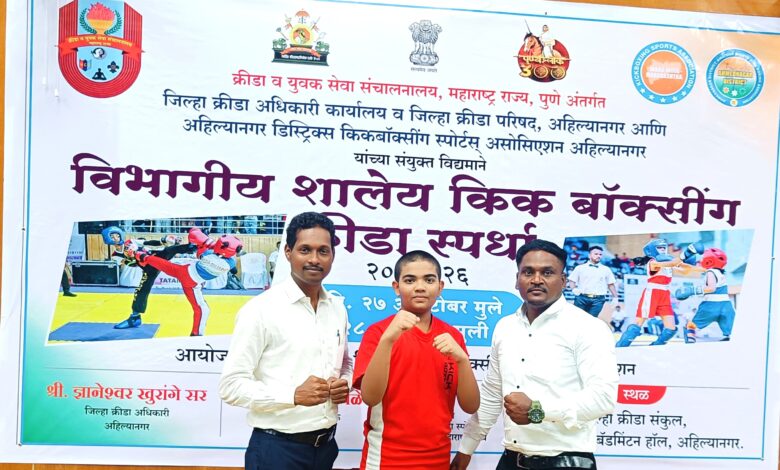 शालेय शिक्षण व क्रीडा विभाग, क्रीडा व युवक सेवा संचलनालय महाराष्ट्र राज्य पुणे अंतर्गत जिल्हा क्रीडा अधिकारी कार्यालय अहिल्यानगर यांच्या संयुक्त विद्यमाने पुणे विभागस्तरीय शालेय किक बॉक्सिंग स्पर्धा २७ व २८ ऑक्टोबर रोजी जिल्हा क्रीडा संकुल वाडिया पार्क अहिल्यानगर येथे संपन्न झाल्या.